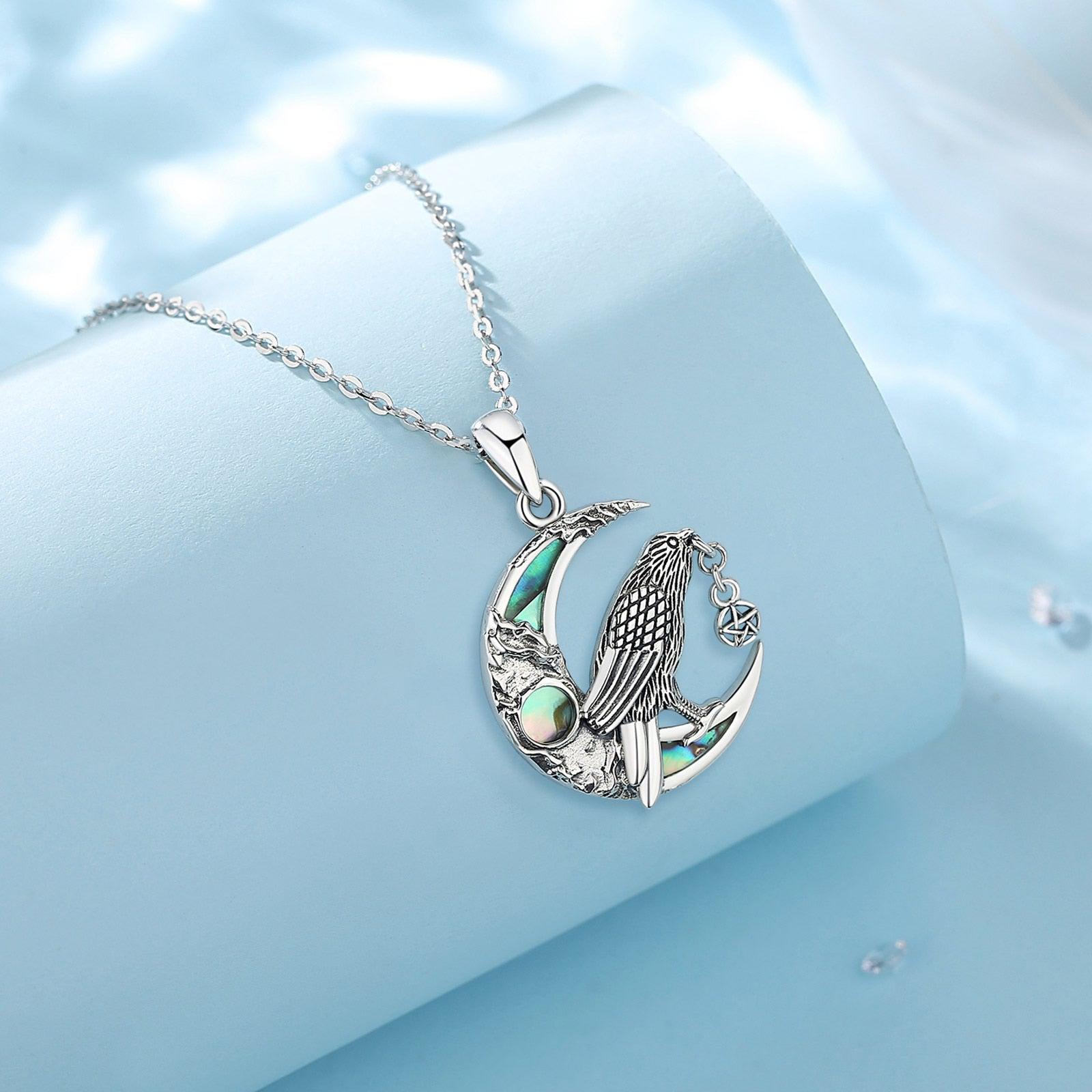 Unleash your inner witch with this beautiful Witchy Raven Moon Necklace! Crafted from natural abalone shell and 925 sterling silver, this stunning necklace adds a hint of dark magic to any look. ๐ฎ At 30.5 by 20mm, it's the perfect size to make a statement. Get yours now and cast your spell! ๐ง๐